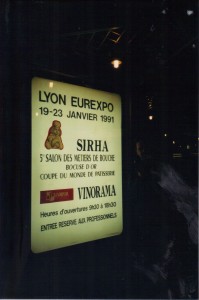 Concurso Mundial Bocuse d Òr 1991,chefe Jorge Monti de Valsassina representante da Argentina e sua ayudante cecilia Yurkovitz