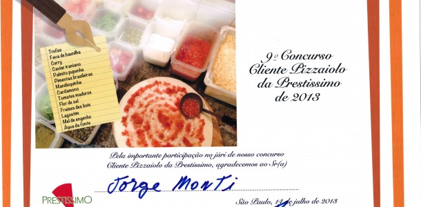 Video do evento onde o chefe Jorge Monti participo como juri do 9º Concurso cliente Pizzaiolo do restaurante Prestissimo em São Paulo,Brasil